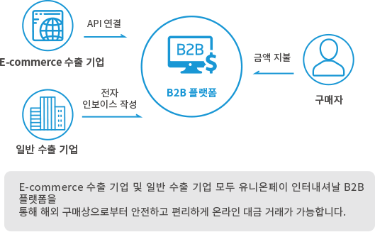 기업 고객을 위한 유니온페이 인터내셔날과 VAT IT 그룹이 함께 제공하는 전속 혜택Cross-border B2B 종합 결제 서비스 플랫폼’은 유니온페이 인터내셔날이 글로벌 이커머스 기업, 무역회사 등 수출 기업을 위해 만든 개방형 B2B 종합 결제 서비스 플랫폼입니다. 이 플랫폼은 해외 온라인 결제, 온라인 대금 거래, 온라인 외화 결제 및 전자 주문서 관리 등 다방면의 서비스를 제공합니다. 기업에게 안전하고 편리한 서비스를 제공하며 디지털 결제 기술을 통해 중국과 세계 각국, 각지, 특히 ‘일대일로’ 국가 간의 무역 발전 촉진을 위해 노력하고 있습니다.