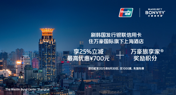 入住万豪集团旗下上海酒店可享25%立减和万豪旅享家®奖励积分